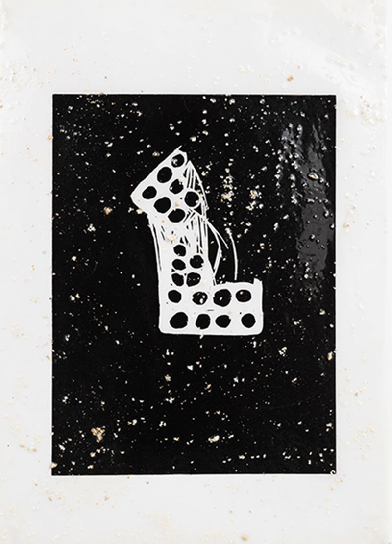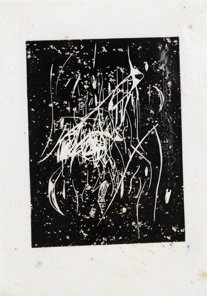 ink, resin, sesame seeds and kitty litter on paper