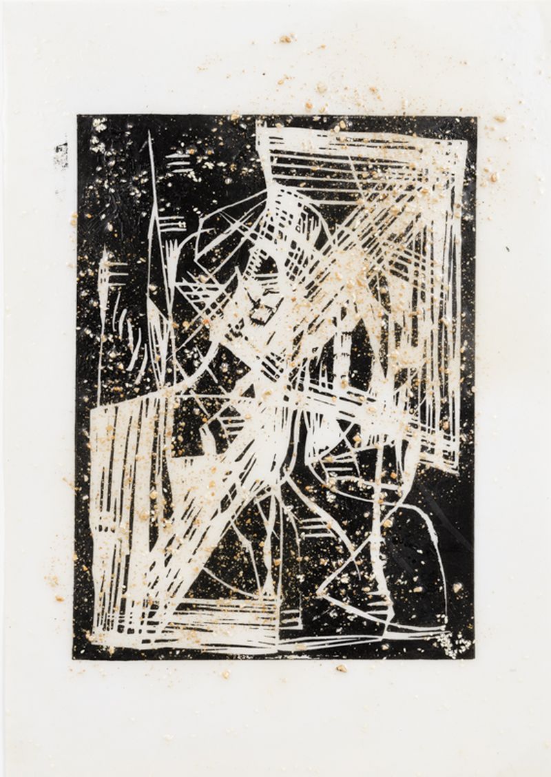 Carborundum, polyvinyl acetate, primal and oil on cardboard