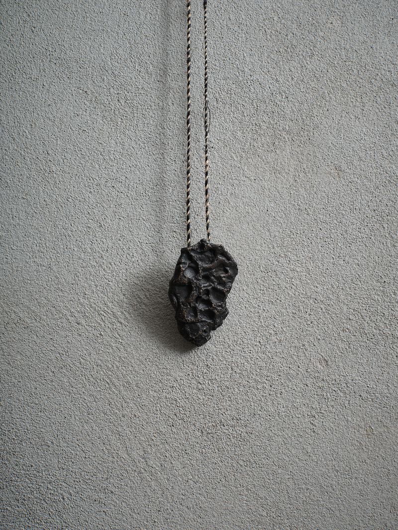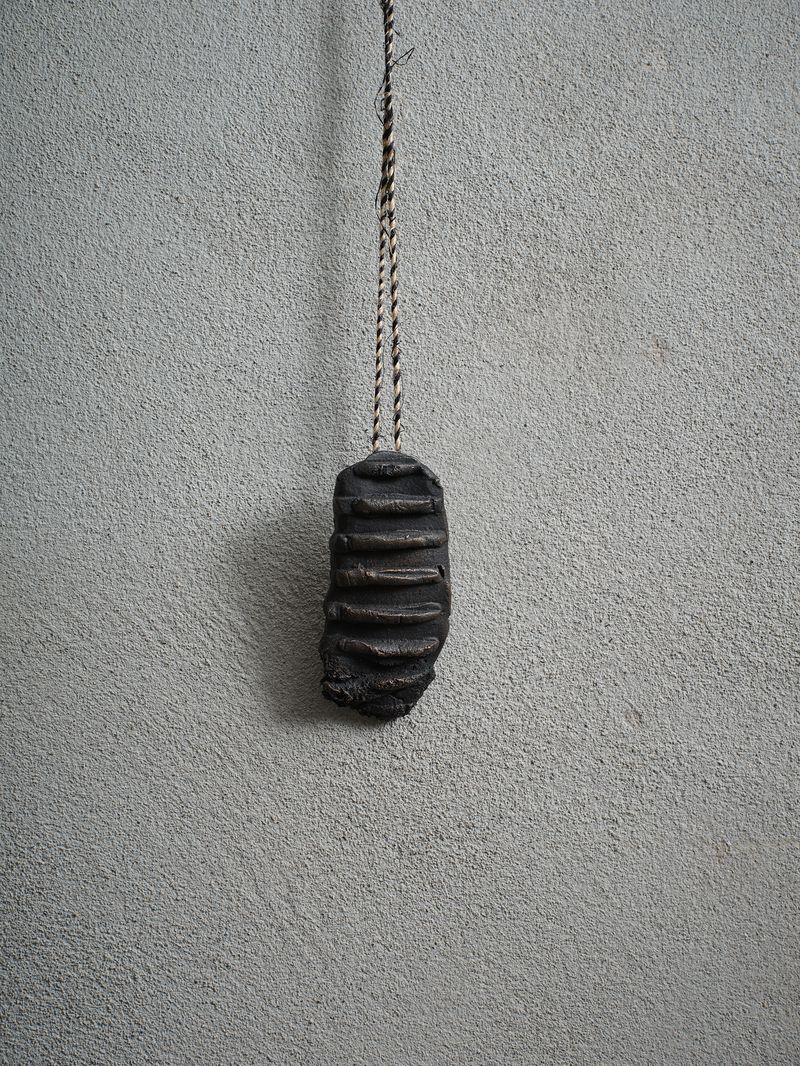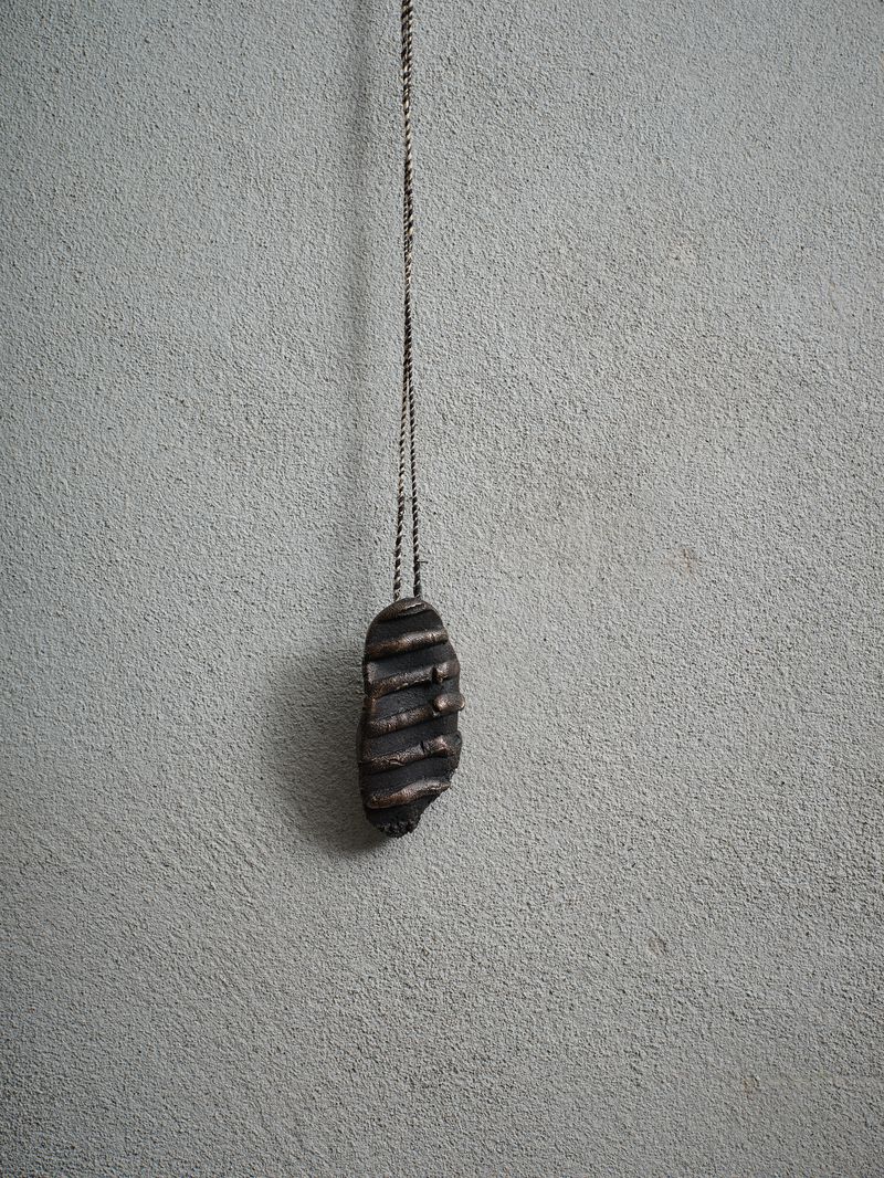 bronze & sterling silver, hessian cord