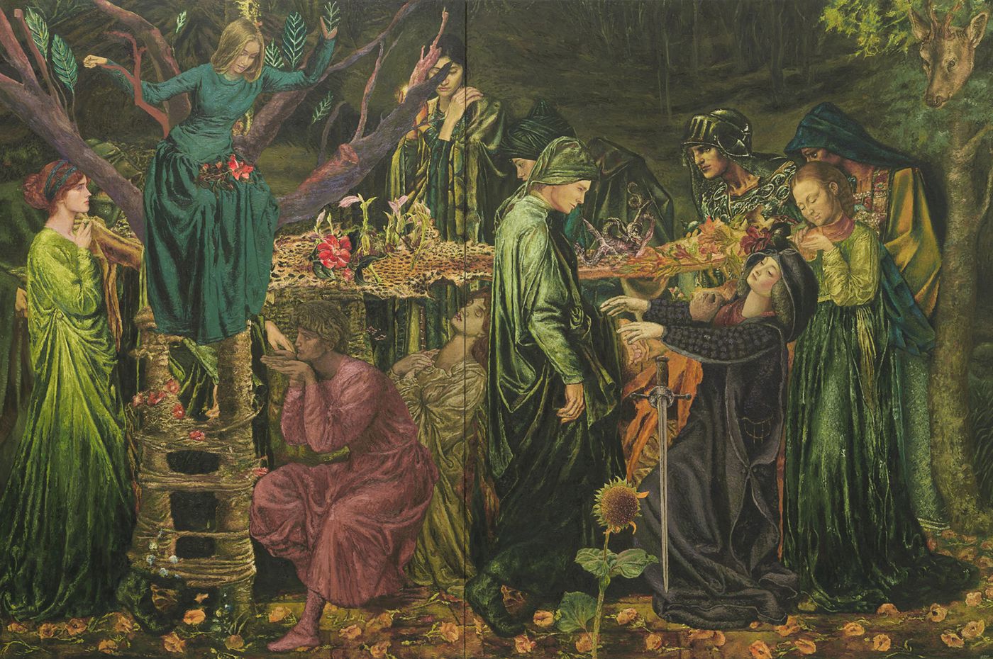 Andrew McLeod, Portrait with peacocks, 2016, oil on linen, 1150 x 1800mm