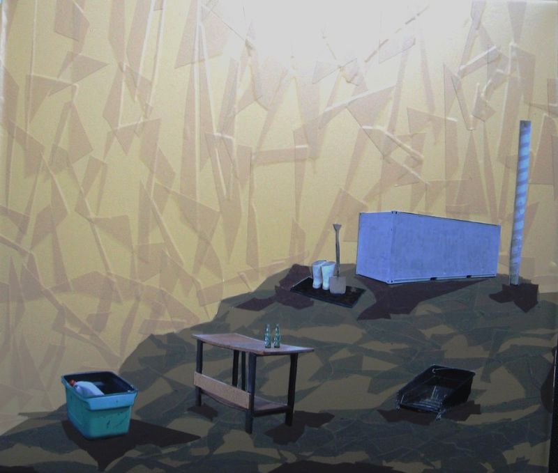 Falling uneasily between the formal, the relational and the environmental, Eve Armstrong’s work is a deceptively formal investigation into the unwanted surpluses of urban environments. What have become her signature materials – flattened cardboard, packing tape, and disowned property – recur not only for their physical and aesthetic functions, but for their ready availability and subsequent ability to sink back into the world.