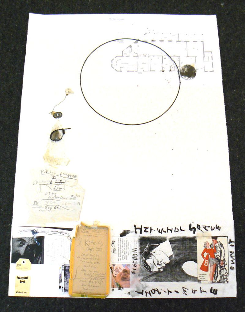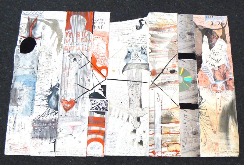 James Robinson, EMOTIONAL EMERGENCY -STATE CONTROLL-(STOP YOUR RUINING ALL MY MEMERYS), 2007, mixed media assemblige and paint on canvas, 1800 x 900 mm