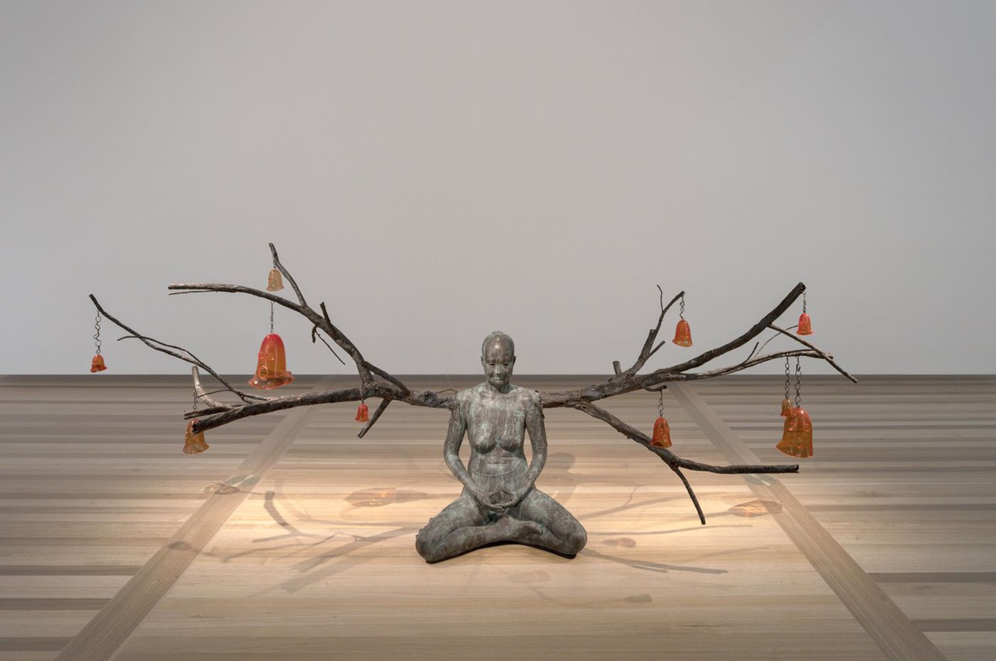 Image: NELL, nature is subtle and mysterious – Tree Woman / Woman Tree, 2022, bronze, patinas, stainless steel, hand-blown glass.