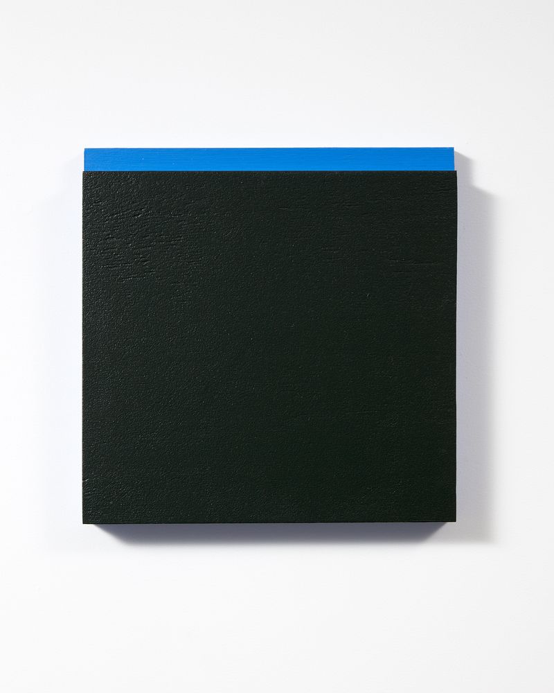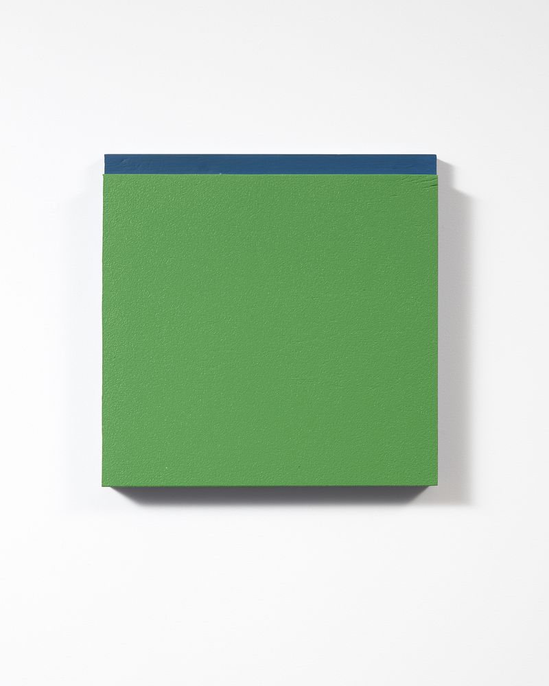 As with all Perkins’ works, the paintings possess an immediate, intuitive rightness. The physical elements and colours are in easy balance. Their formal restraint, not to say simplicity, inevitably draws you in close, summoning you to attend to every visible surface and edge, every quirk of the materials and their combination. Unlike previous works by Perkins, which relied heavily on the ingredients associated with painting qua fine art, these depend on more commonplace, utilitarian substances. Consequently, they also direct attention outward to the world of everyday painted objects and spaces in which they exist.
