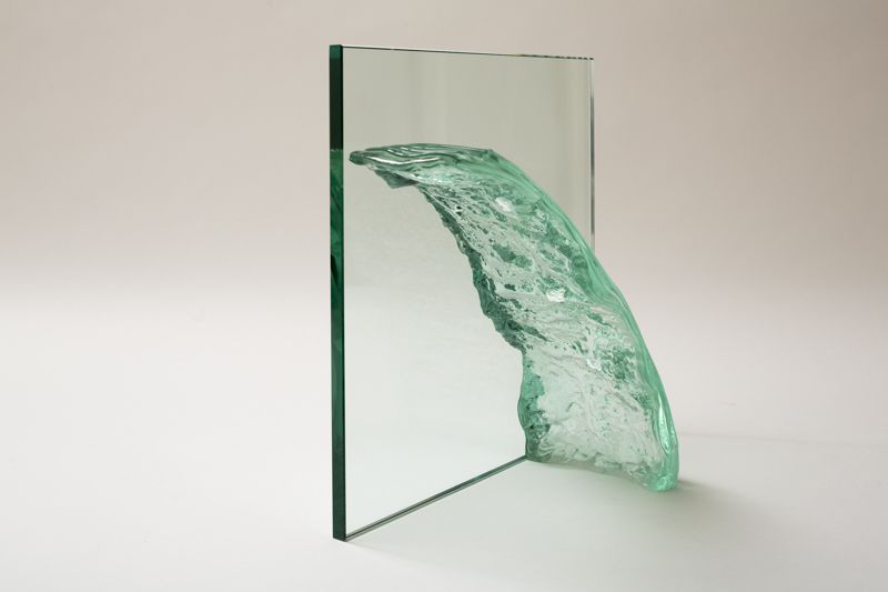 Regan Gentry, Waterfall, 2012, window glass slumped onto volcanic stone, 600 x 600 x 240mm.